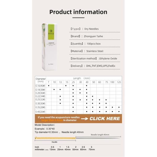 The Disposable Sterile Acupuncture Needle is carefully produced with the most popular new technology of the world,the needle handle made of stainless steel tube, nice,easy to use. quality stable,reliable, the tip is smooth, sharp.needle high strength, good toughness,the needle Handle,needle,body structure are in unique design, An effective solution to the needle body easy and needle handle from the loose problem.the needle insert into the Skin quickly, no pain, the patient easy to accept.